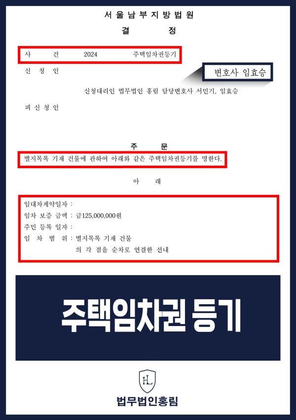 그 결과 법원에서는 본 변호인의 주장을 받아들여 주택임차권등기를 명하였습니다.