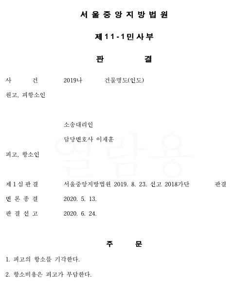 임대인을 대리하여 건물 명도 항소심 사건에서 승소한 사안