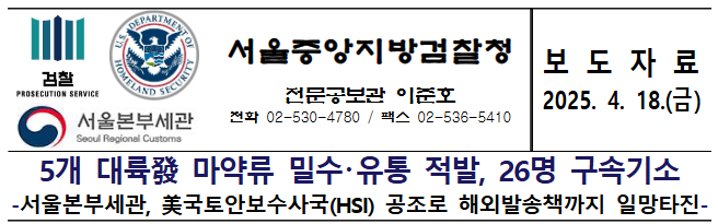 2025년 4월, 서울중앙지검은 미국, 유럽, 호주, 중남미, 동남아에서 밀수된 마약류 사건에 대해