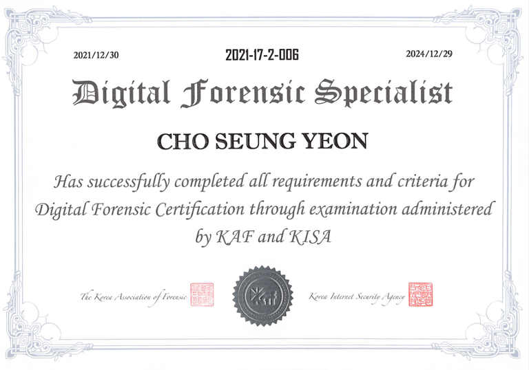 디지털포렌식 자격 보유 (2021-17-2-006)