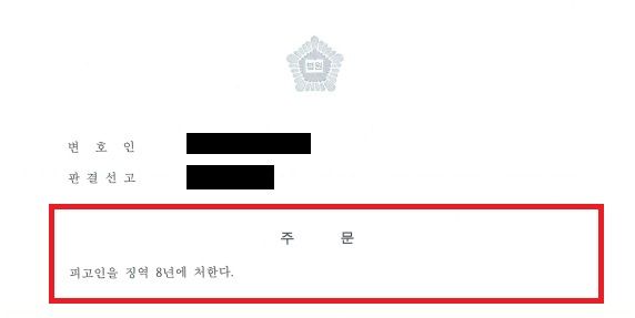 수사기관에서 1년이 넘는 기간 동안 수사가 계속 되었고, 상대방이 합의 제안도 하지 않아서 의뢰인분께서 상당히 힘들어 하셨습니다. 하지만 결국 경찰에서 기소의견으로 송치가 되었고, 검찰에서도 추가 수사 끝에 기소를 하였고, 법원에서 재판 끝에 징역 8년 형이 선고되었습니다.