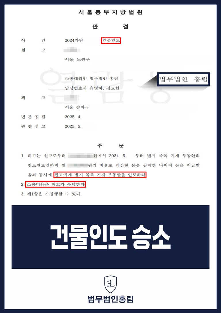 법무법인 홍림은 이번 사건을 통해 건물인도 승소를 이끌어냈으며, 향후 유사 사건에서도 점유 퇴거와 임대보증금 정산을 동시에 실현하는 전문적 법률전략을 제시할 수 있습니다. 조기에 법률적 조력을 받는 것이 불필요한 소모를 막고 최단기 내 분쟁을 종결짓는 핵심 열쇠가 됩니다. 건물인도 승소를 위한 절차와 전략은 사안에 따라 달라질 수 있으므로 전문 분석이 필수입니다.