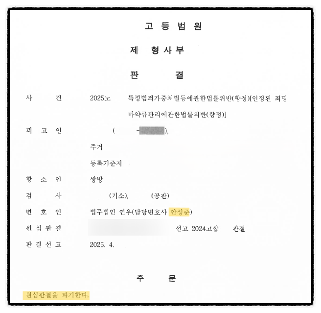 오늘은 마약과 관련한 범죄로 인해 1심에서 징역형을 선고받은 의뢰인이 항소심에서 본 변호인의 조력을 통해 전략적인 대응을 한 결과 1심 판결이 취소되고 상당한 감경을 받은 사건을 소개해 드리고자 합니다.