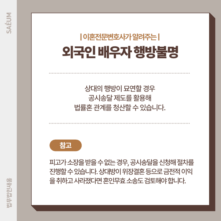 외국인 배우자 행방불명, 어떻게 이혼할까?