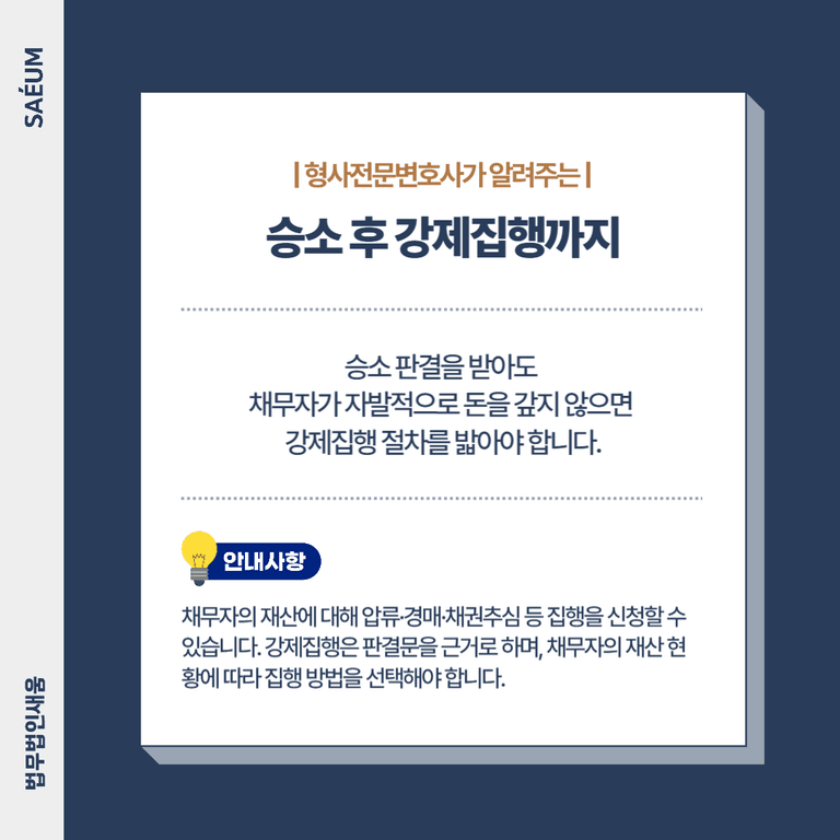 소송에서 승소한 후에도 강제집행까지 준비해야