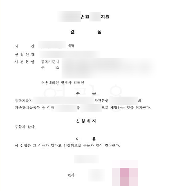 그 결과, A 씨는 법원으로부터 신속히 개명신청 허가 결정을 받으셨고