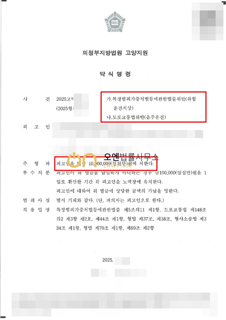 담당변호사의 주장을 받아들여 검찰은 구약식 처분을 내렸고, 약식명령 벌금형이 선고되었습니다.