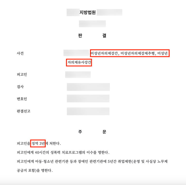 저는 피해자의 법률대리인으로서, 처음부터 피고인 측과의 부적절한 합의 시도를 철저히 차단하고, 피해자의 회복에 집중했습니다. 형사재판에서 가장 중요한 것은 진심 어린 반성과 책임 있는 처벌입니다. 피고인은 재판에서 범행 일체를 인정했으나, 피해자에게 실질적인 사과나 회복적 노력이 부족했고, 피해자 또한 강한 처벌을 원하고 있었습니다. 재판부는 이러한 점을 종합하여 피고인에게 징역 3년의 실형을 선고했습니다. 아울러 성폭력 치료프로그램 이수와 함께 아동·청소년 및 장애인 관련 기관에 5년간 취업을 제한하는 명령도 내려졌습니다. 이는 단지 처벌의 목적을 넘어서, 향후 유사한 피해를 방지하기 위한 최소한의 조치이기도 합니다.