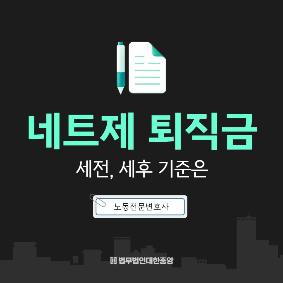 ![[노동전문변호사] 네트제 퇴직금 받으려면! 세전 세후 기준은?](/_next/image?url=https%3A%2F%2Fd2ai3ajp99ywjy.cloudfront.net%2Fuploads%2Ftitleimage%2Foriginal%2F5f10247ba2f0f301e1483f6b-original.jpg&w=3840&q=75)