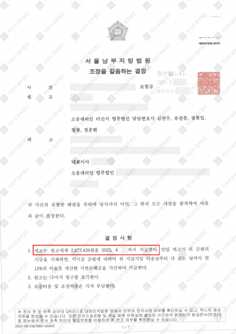 이에 따라 보험사는 약 297만원의 실손의료보험금을 지급하게 되었고, 의뢰인은 억울함을 해소하게되었습니다