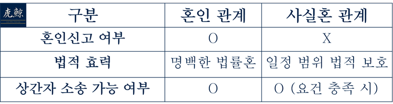 ※ 단순 동거 및 연애는 사실혼이 아닙니다.