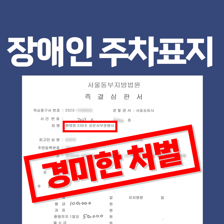 장애인주차 스티커는 공문서이기 때문에 이 스티커를 위조, 변조하여 사용하게 되면 과태료 처분과 공문서 위조,변조로 형사처벌을 받게 되는데요.