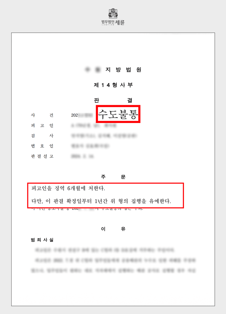 단수조치에 정당한 사유가 있다고 판단하여 섣불리 실행했다가는 형사 처벌의 대상이 될 수 있기 때문에 주의하셔야 하는데요. 이 경우 수도불통죄에 해당할 수 있고 최대 10년의 징역형에 처해질 수 있기에 누수 문제를 해결하려거나, 해당 범죄 혐의를 받고 있다면 세륜의 조력을 받으시기를 추천드립니다.