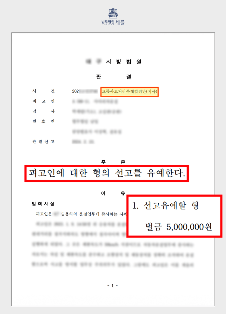 오늘 소개해드린 사례와 같이 만일 본인이 운전업 종사자라면 일상으로의 빠른 회복이 급선무이실텐데요, 앞서 말했듯 12대 중과실에 의한 교통사고는 무관용 원칙이 적용하여 높은 형이 선고되므로 오늘 사례처럼 관대한 처분을 받는 경우가 많지는 않습니다. 그러나 의뢰인이 상황을 포기하지 않고 변호사의 역량 또한 충분하다면 아무리 중한 범죄를 저질렀더라도 예상을 뛰어넘는 최선의 결과를 얻을 수 있습니다.