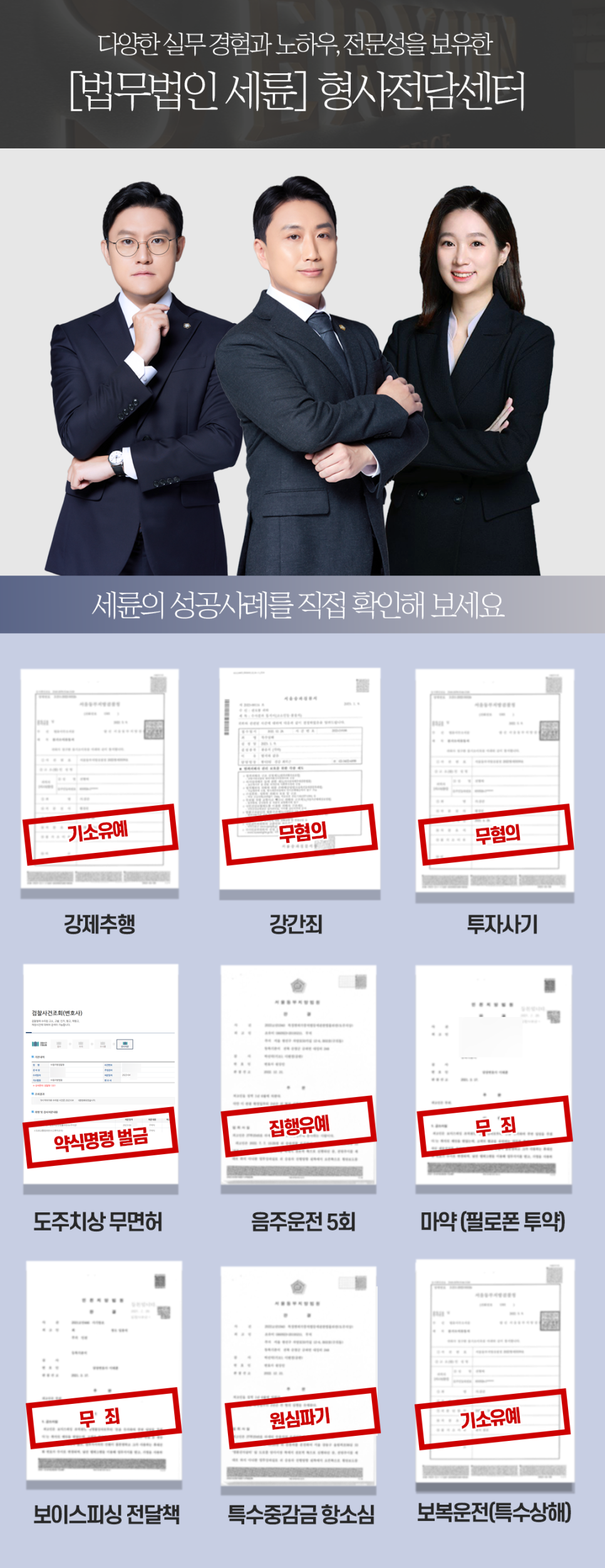 📢 우수 검사 출신 변호사 / 10년 경력 형사전문변호사 [법무법인 세륜]의 실제 사례를 바탕으로 각색한 성공 사례입니다.