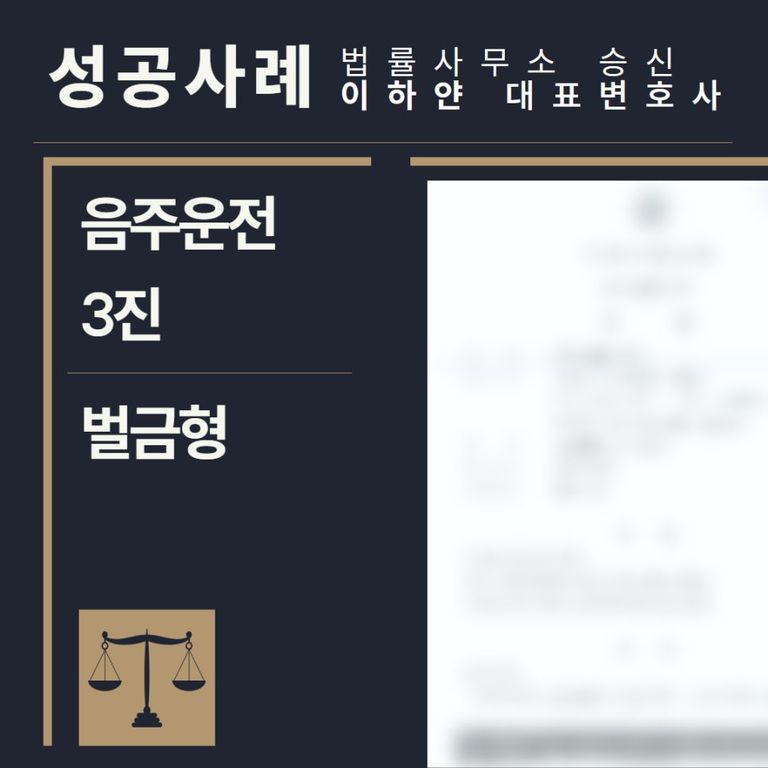 이러한 노력 결과 재판부는 이하얀 변호사가 제시한 모든 주장을 인정하였으며, 또한, 의뢰인에게 적용되었던 음주운전 3진 혐의에 대해서는 '벌금형'이라는 가벼운 처벌을 선고하며, 사건을 마무리 지을 수 있었습니다.