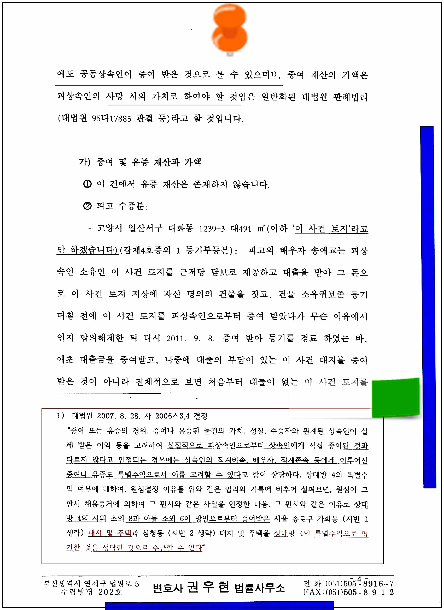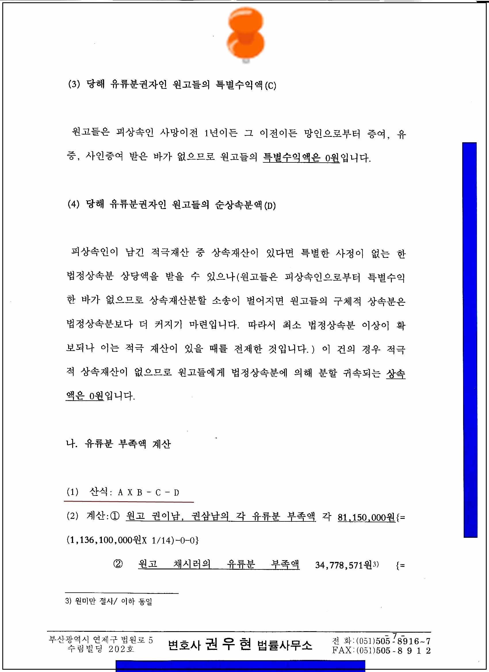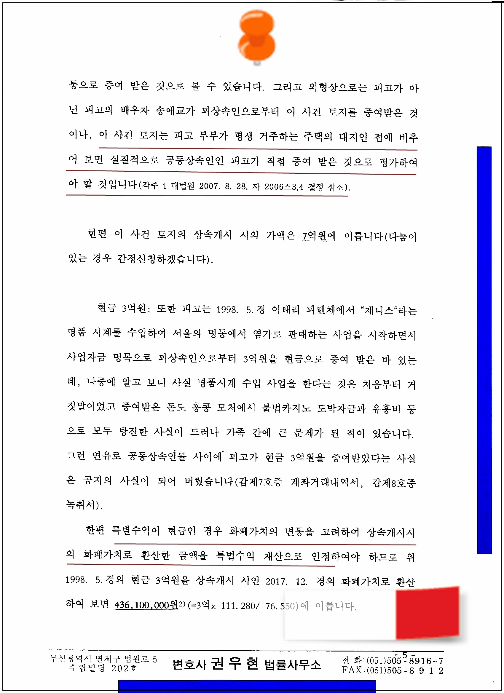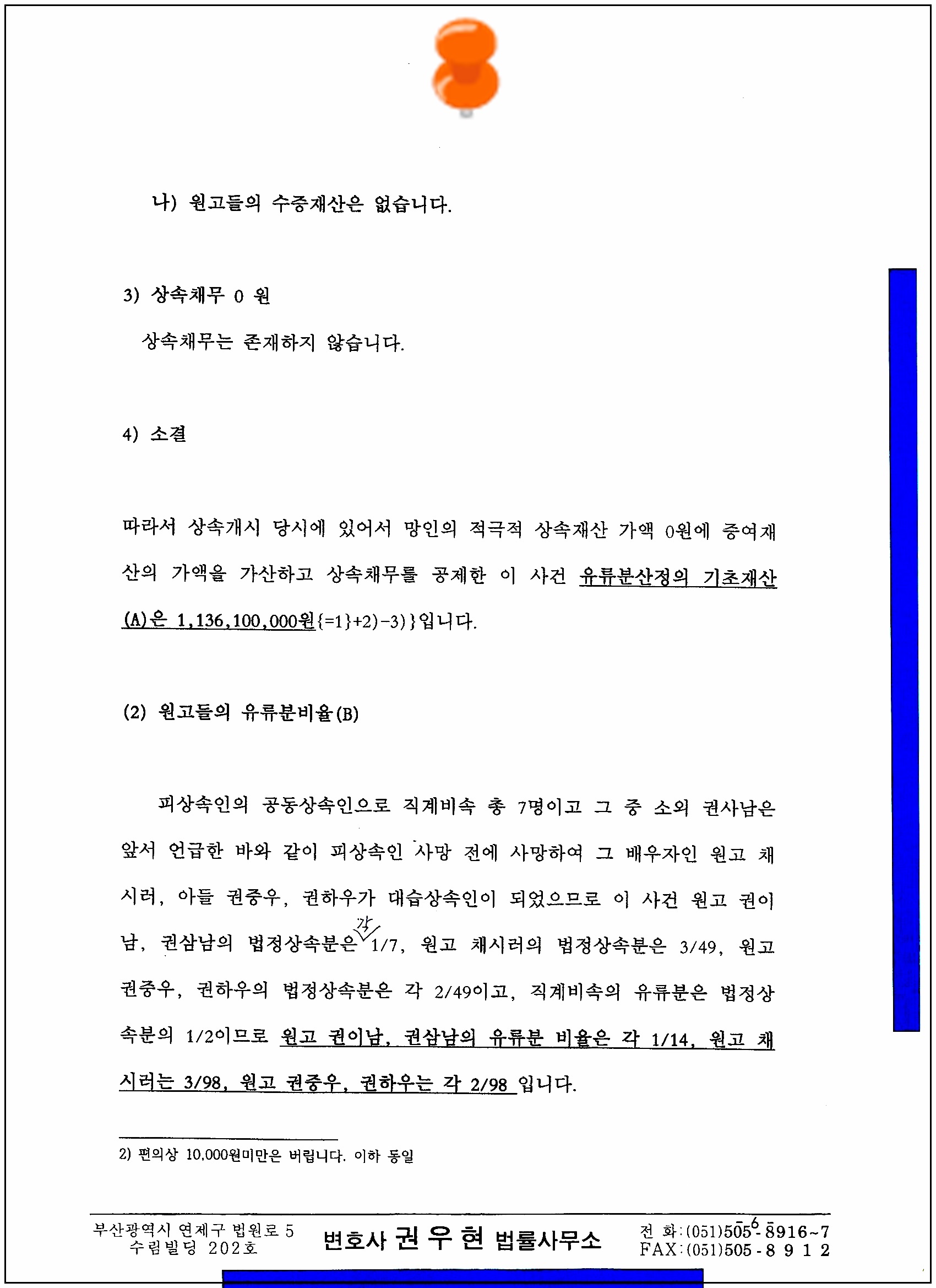 4. 이러한 판례와 법리를 감안하여 다음과 같이 유류분 반환 청구의 소장(가상의 사례에 따른 것임)을 올려 봅니다.