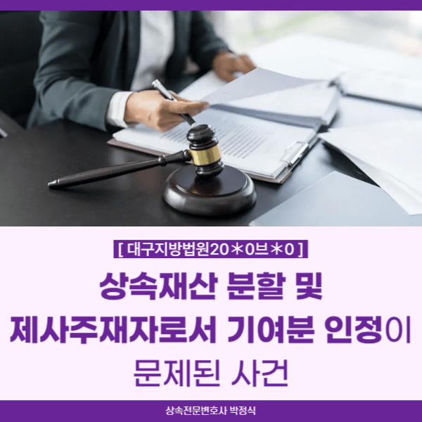 이에 청구인은 상대방들을 상대로 망인 상속에 관하여 제사주재자로서 분묘 유지 및 관리 책임을 수행하였다는 등 청구인의 기여분을 30%으로 인정할 것을 주장하면서 위 상속재산들에 관하여 상속재산분할을 청구하기에 이르렀습니다.