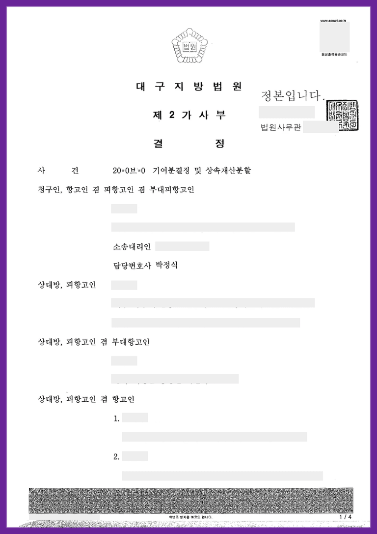안녕하세요, 상속전문변호사 박정식입니다.
