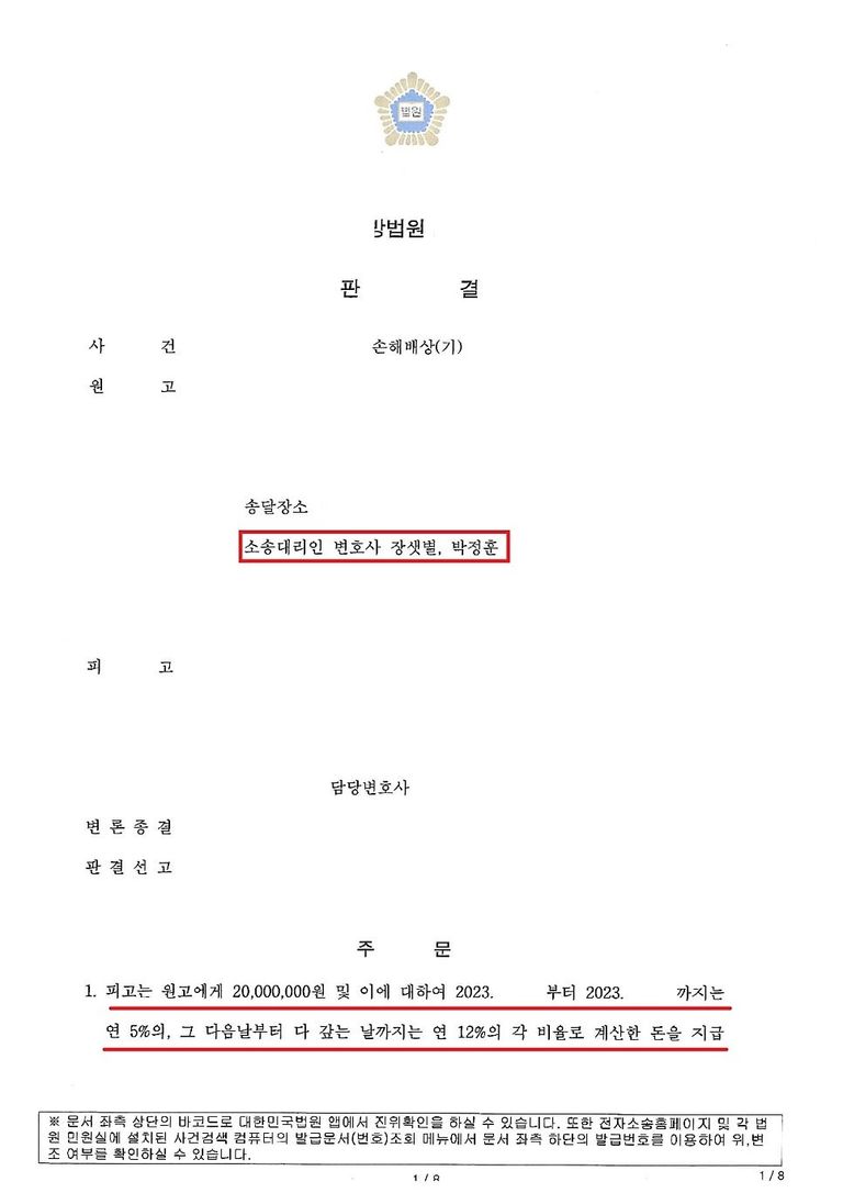 판결문 공유드립니다.