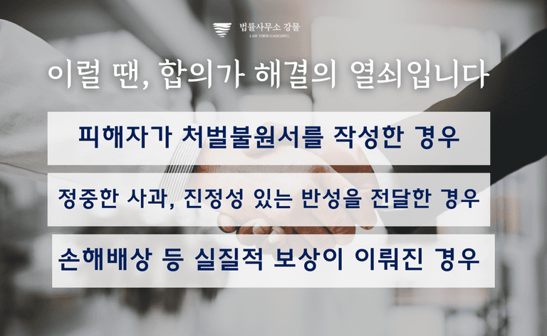 다음과 같은 경우, 합의는 사건 해결의 핵심 열쇠가 될 수 있습니다: