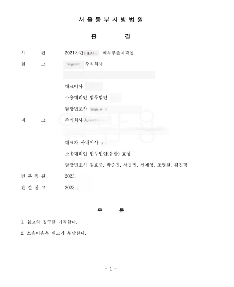 저는 즉각 응소하여 이 사건의 경위, 계약서의 내용, 원고의 귀책에 기한 채무불이행 등을 주장 입증하였고 법원은 저희의 주장을 받아들여 원고 청구를 기각하였습니다.