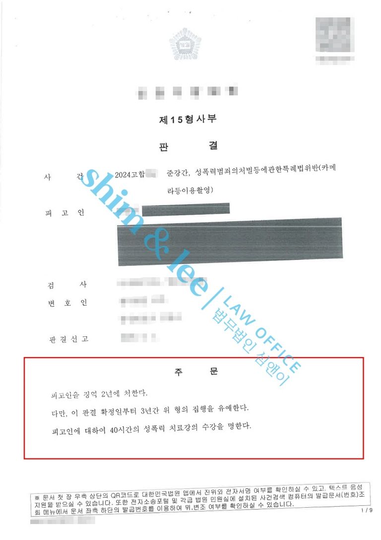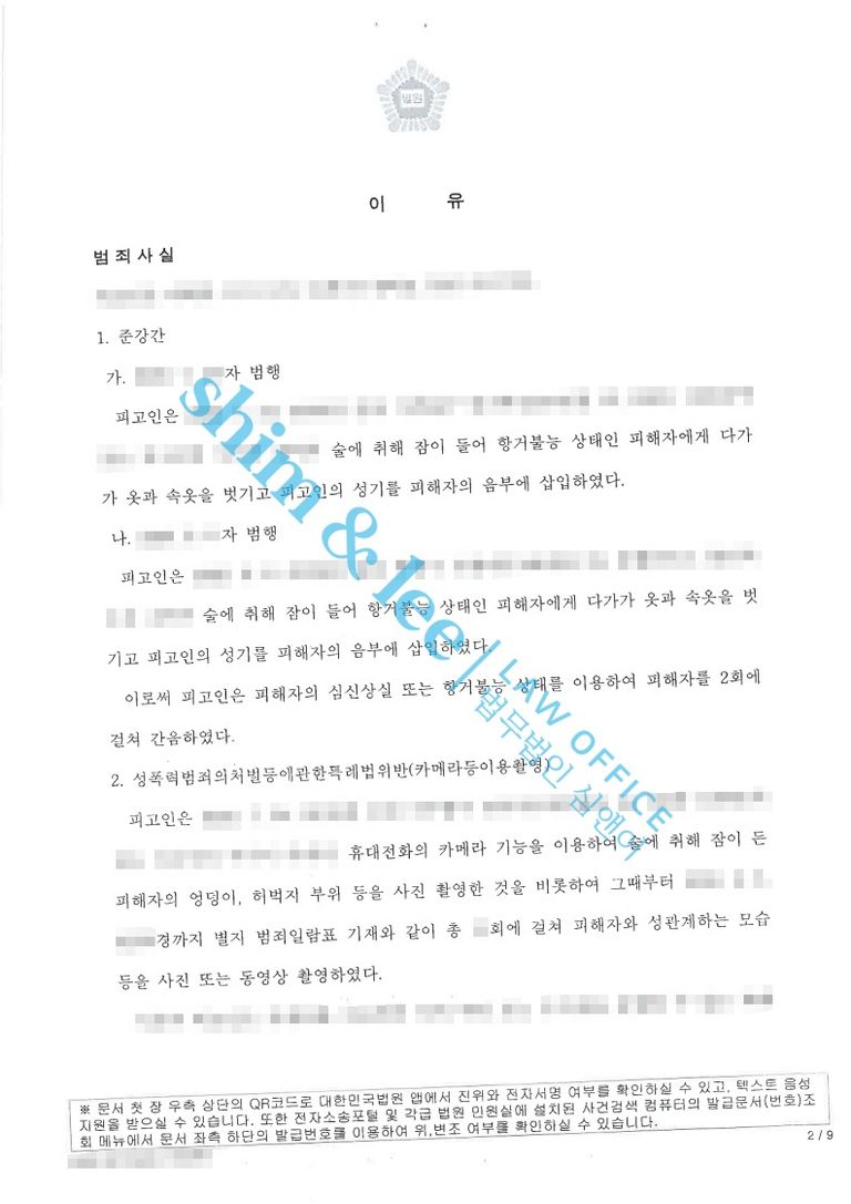 -결국 가해자는 술에 취해 심신상실 상태에 있던 피해자를 간음한 사실과, 동의 없이 신체를 촬영하여 성적 수치심을 유발한 사실이 모두 인정되어 준강간죄 및 카메라이용촬영죄로 징역 2년, 집행유예 3년, 성폭력 치료강의 40시간의 판결이 선고되었습니다.