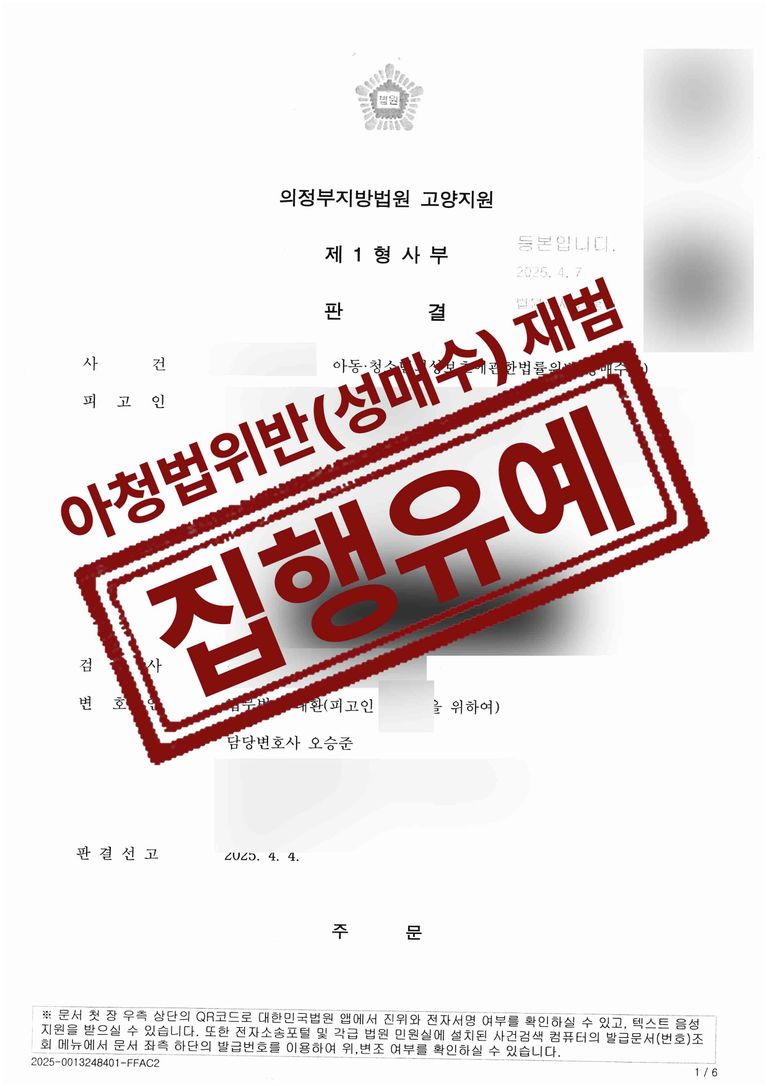이에 재판부는 아청법 성매수에 대해 집행유예를 선고하였습니다.