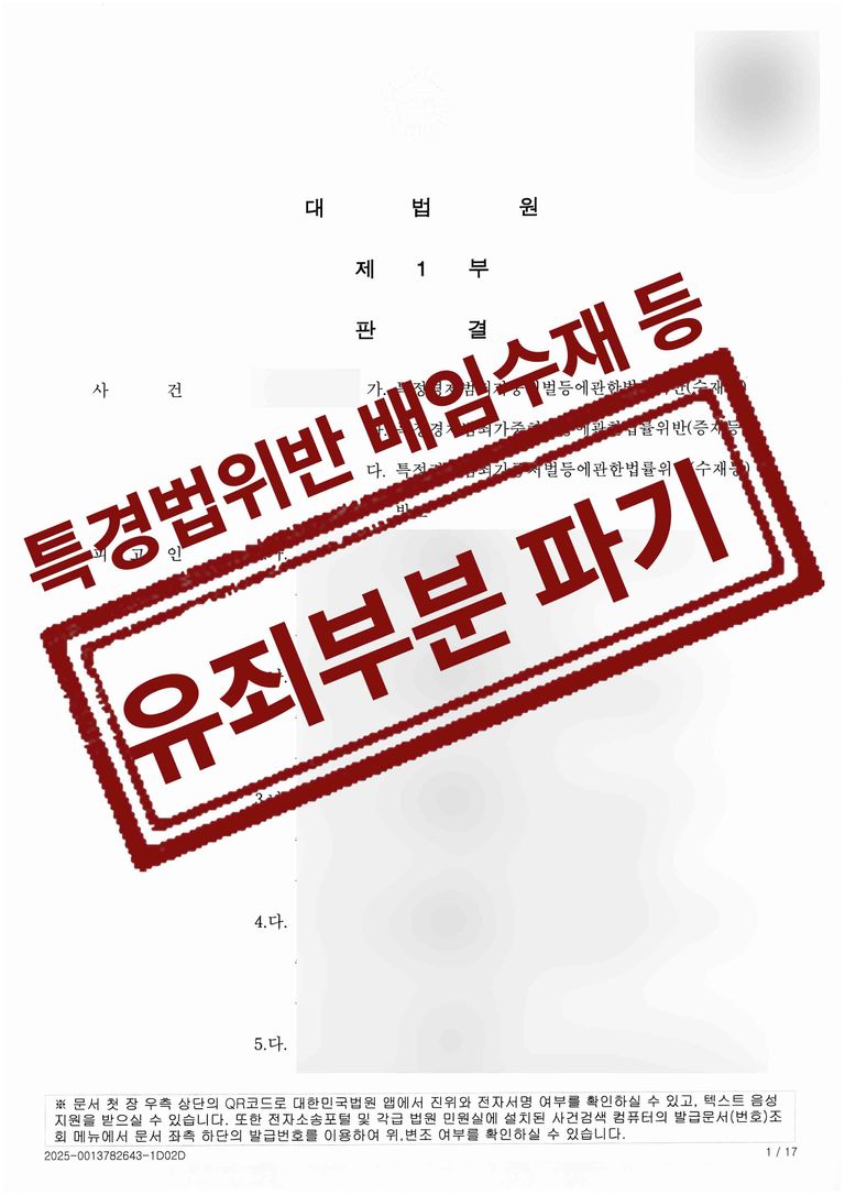 2심 항소심 재판부 또한 이를 인정하여 유죄부분에 대하여 파기환송 판결을 내려주었습니다.