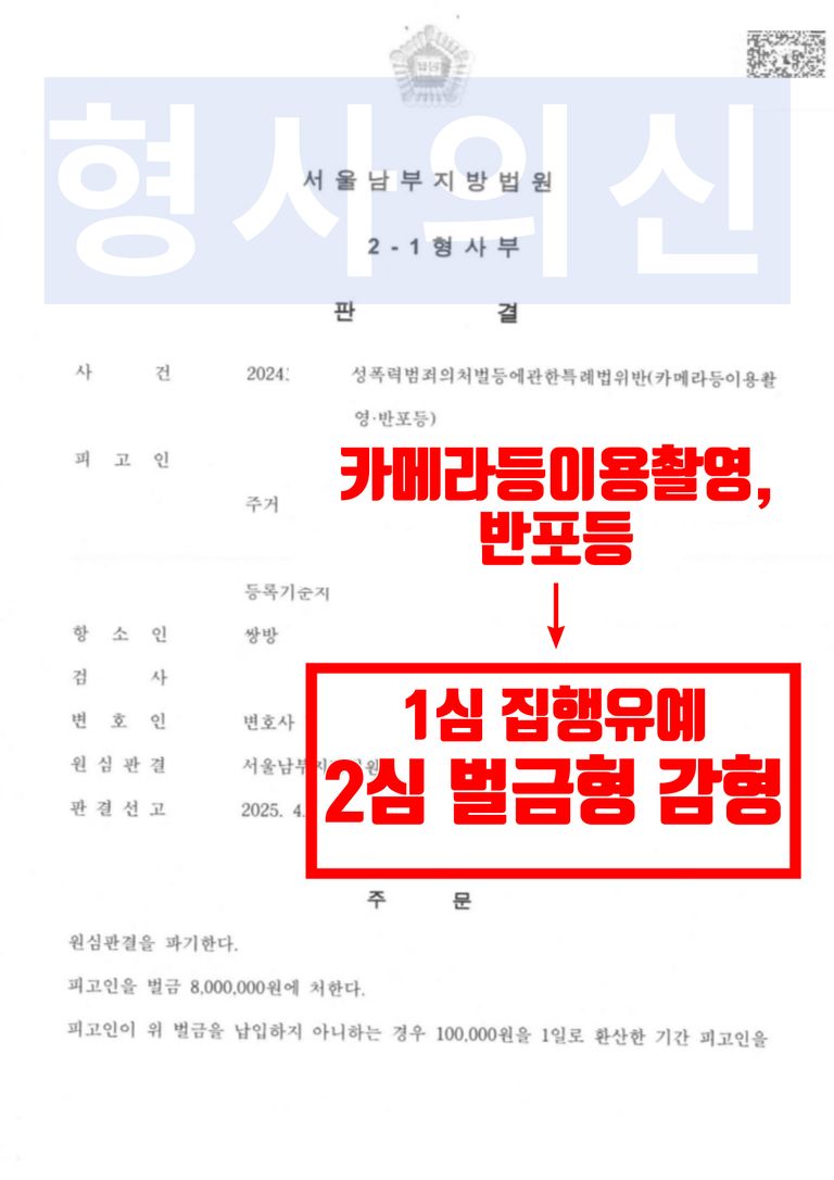 서울남부지방법원 항소심 재판부는 법률사무소 유(唯)의 형사전문변호사의 주장 및 제출한 양형사유를 받아들여, 집행유예 2년의 원심을 파기하고 벌금 800만원을 선고하였습니다.