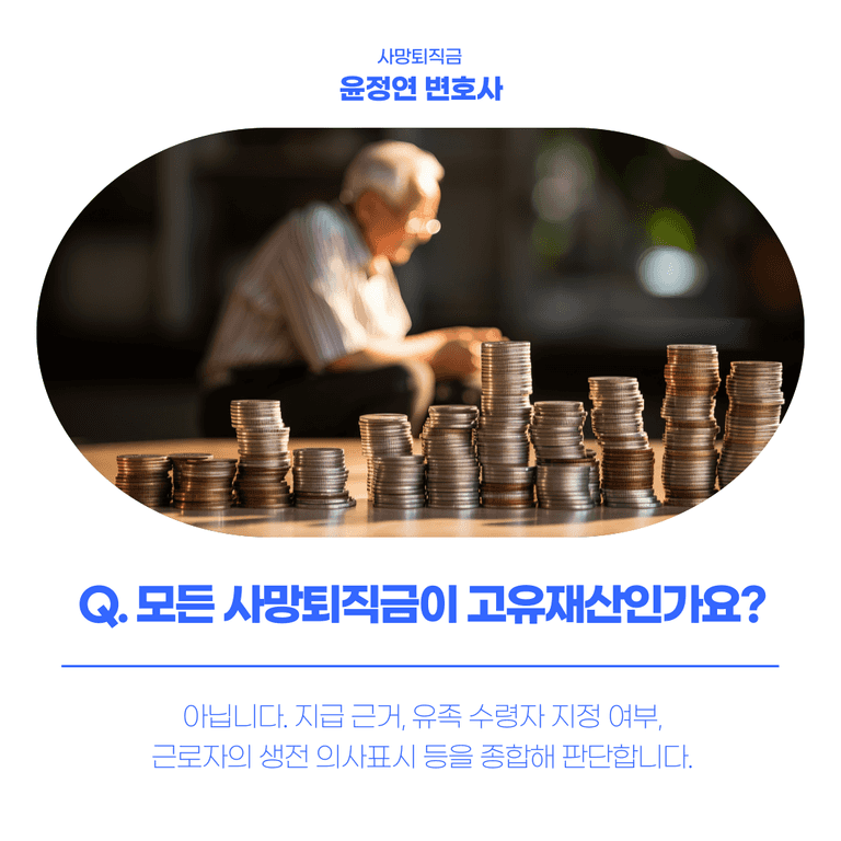 그런데 퇴직금이라 하면, 보통은 “고인의 근로 대가니까 상속재산이다”라고 생각하시기 쉽죠.