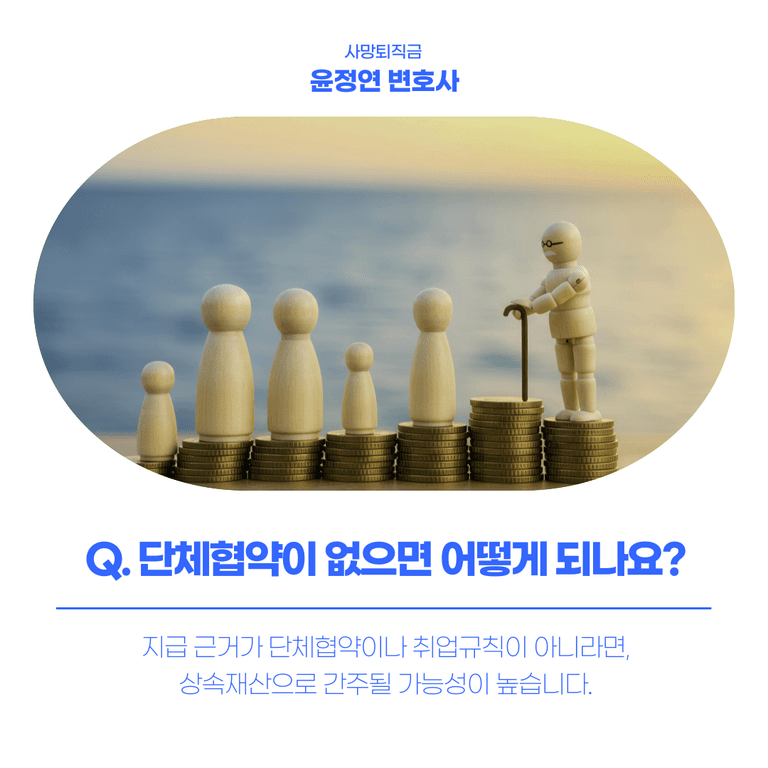 사망퇴직금이 유족의 고유재산이 되려면, 그 지급 근거가 단체협약 또는 취업규칙에 명시되어 있어야 합니다.