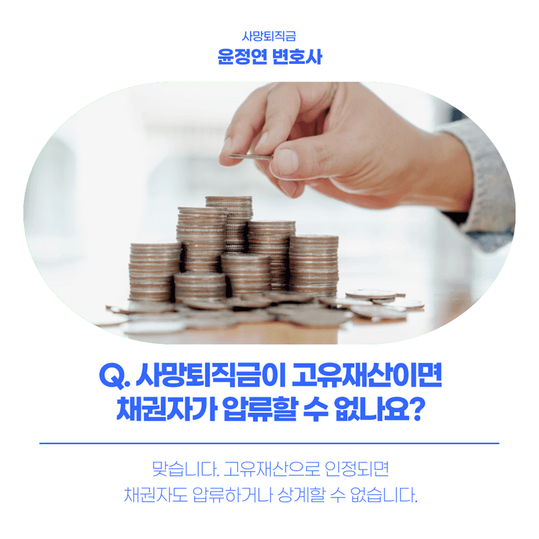 사망퇴직금이 상속재산이 아니라면, 채권자는 이를 압류하거나 상계할 수 없습니다.