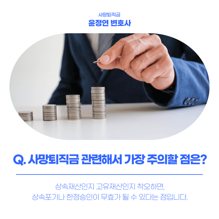 사망퇴직금을 상속재산으로 착각하고 한정승인 심판을 청구하거나 상속포기를 선택하는 경우가 많습니다.