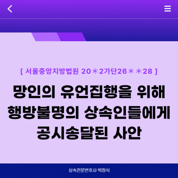 안녕하세요, 상속전문변호사 박정식입니다.
