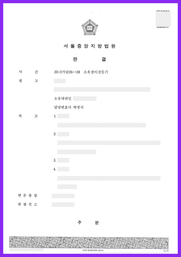 ② 민사소송법 제194조에 따라 당사자의 주소를 알 수 없는 경우나, 또는 외의 대한민국 대사 등에 촉탁하는 방법으로도 송달이 불가한 경우에는 법원은 직권으로 또는 당사자의 신청에 따라 공시송달을 할 수 있고, 이에 기초해 판결을 할 수 있다고 한 바 원고의 청구를 모두 인용하는 판결을 하였습니다.