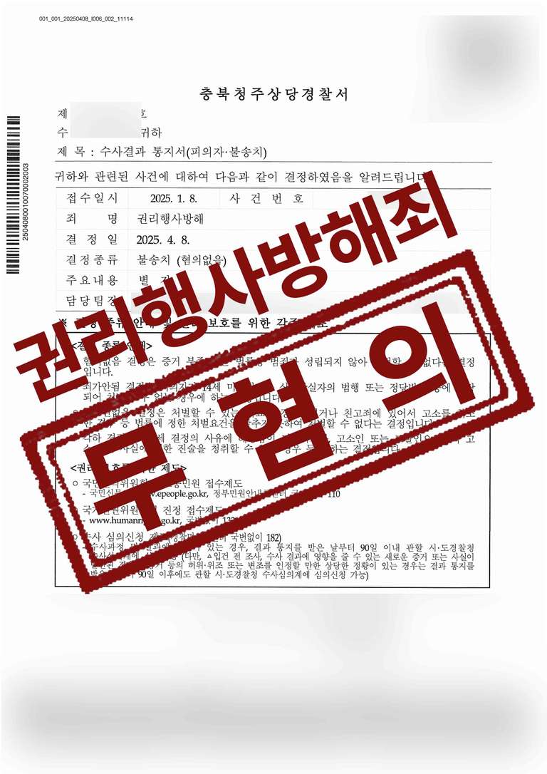 법무법인 대환 형사전문변호사가 확인한 결과 소유권 관련 부분에서 의뢰인의 혐의를 부인할 수 있다는 점을 파고들었고 권리행사방해에 관해 부인할 수 있는 법리를 의견서로 제출하였습니다. 또한, 경찰조사 전에 선임되어 피의자조사 때 역시 수사에 적극적으로 임하였습니다. 이에 기소될 수도 있었으나 권리행사방해 무혐의를 받을 수 있습니다.