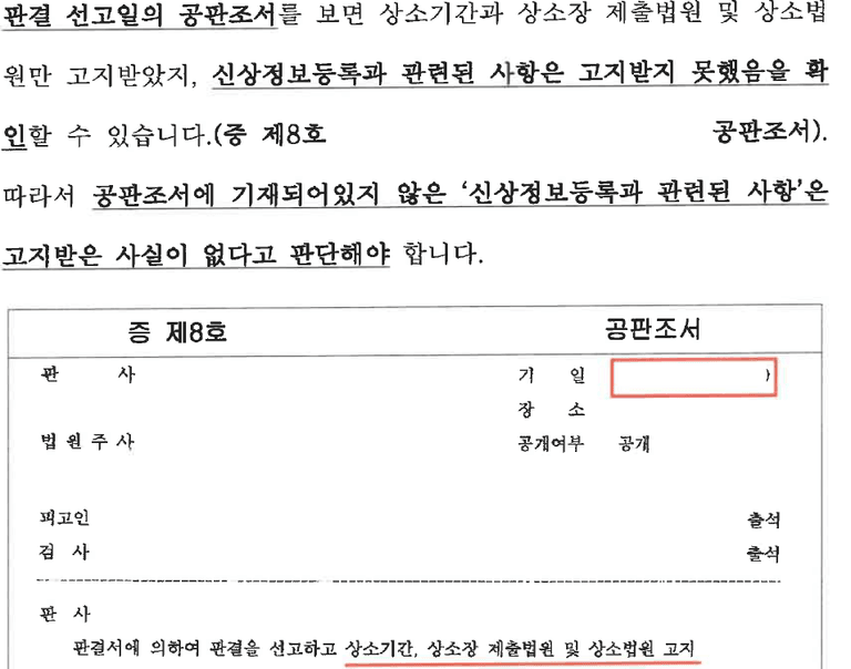 우선, 의뢰인 기존 사건의 공판조서를 확보하여 분석했고, 대법원예규상 이러한 고지는 반드시 조서에 기재하게 되어있지만 의뢰인의 경우 기재되어 있지 않으므로, 법원이 의뢰인에게 고지한 사실이 없다는 점을 증명했습니다.