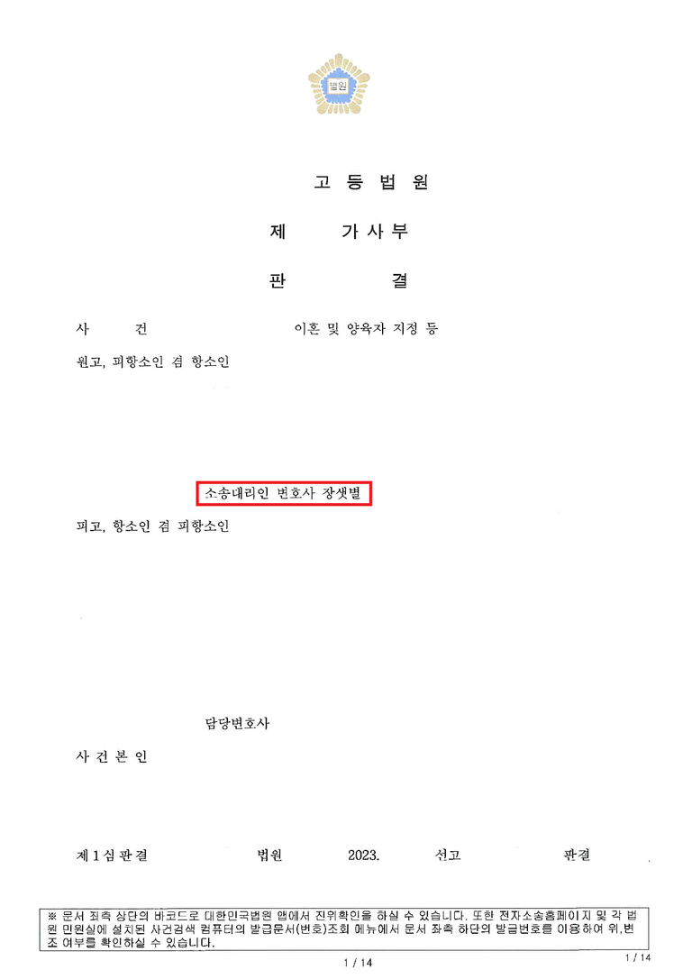 이러한 이유로 이혼 소송을 홀로 진행하셨지만,