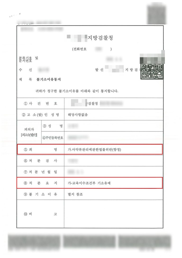 마약해외직구로 적발되었으나