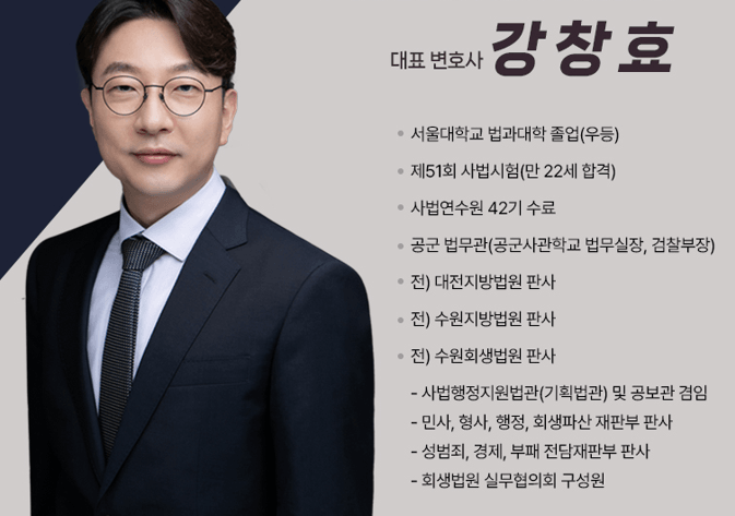 안녕하세요, 8년간 판사를 역임한 강창효 변호사입니다.