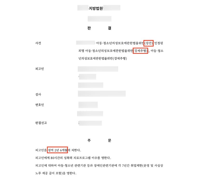 이번 사건의 피해자는 단순한 종업원이 아니었습니다. 미성년자였고, 사장인 피고인을 믿고 따랐던 한 사람의 인생이었습니다. 그런데 피고인은 자신이 운영하던 식당에서, 또 자신의 집과 아파트 단지 등에서 무려 6회에 걸쳐 피해자를 반복적으로 추행했습니다. 결국 법원은 징역 2년 6개월의 실형과 80시간의 성폭력 치료프로그램 이수, 7년간의 취업제한을 명했습니다.