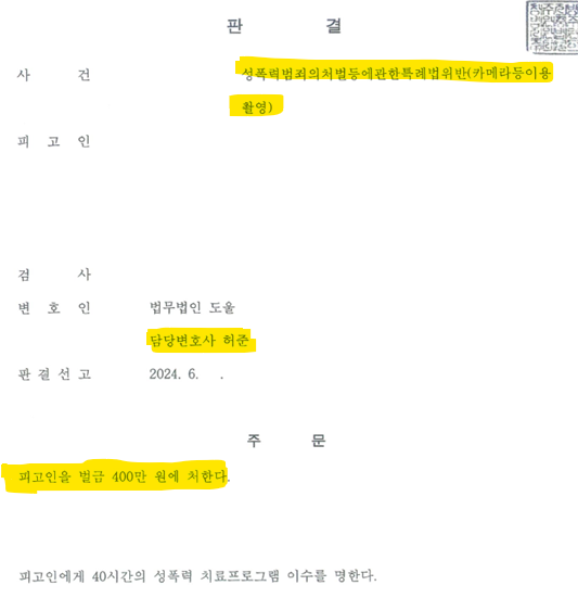 의뢰인에게 가장 좋은 결과는 선고유예일테지만, 검찰 단계에서의 기소유예 처분보다 법원 단계에서의 선고유예 처분을 받기가 훨씬 어려운 것이 통상입니다. 그래도 차선책으로 벌금형 선고를 받게 되었고, 수강명령 외에 취업제한이나 신상정보 공개와 같은 무시무시한 부가형도 피할 수 있었습니다. 성범죄 사건에서는 사실 본형 외에도 각종 부가처분이 함께 선고되는 경우가 많아 일상생활에 많은 제약이 가해지는 것이 보통입니다. 따라서 본형 외에도 부가처분이 반드시 필요하지 않다는 사정 또한 효과적으로 어필하여 선고결과에 반영토록 할 필요가 있습니다.