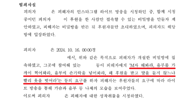 A씨는 압수·수색 영장을 집행당하면서 경찰로부터 "라이브방송은 후원금을 지불해야만 입장할 수 있었고, B양은 후원자들의 요구에 따라야만 하였다."라는 설명을 들었습니다.