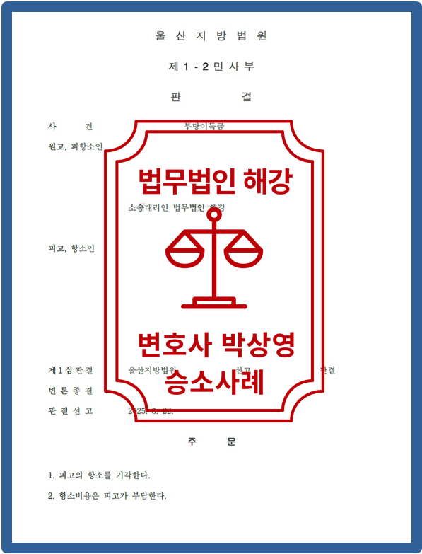 현명한 대처와 전문성을 갖춘 법무법인 해강의 조력으로 저희 법무법인 해강은 의뢰인의 재산보호를 지키고자 하였고 이에 [전부 승소]하였습니다.