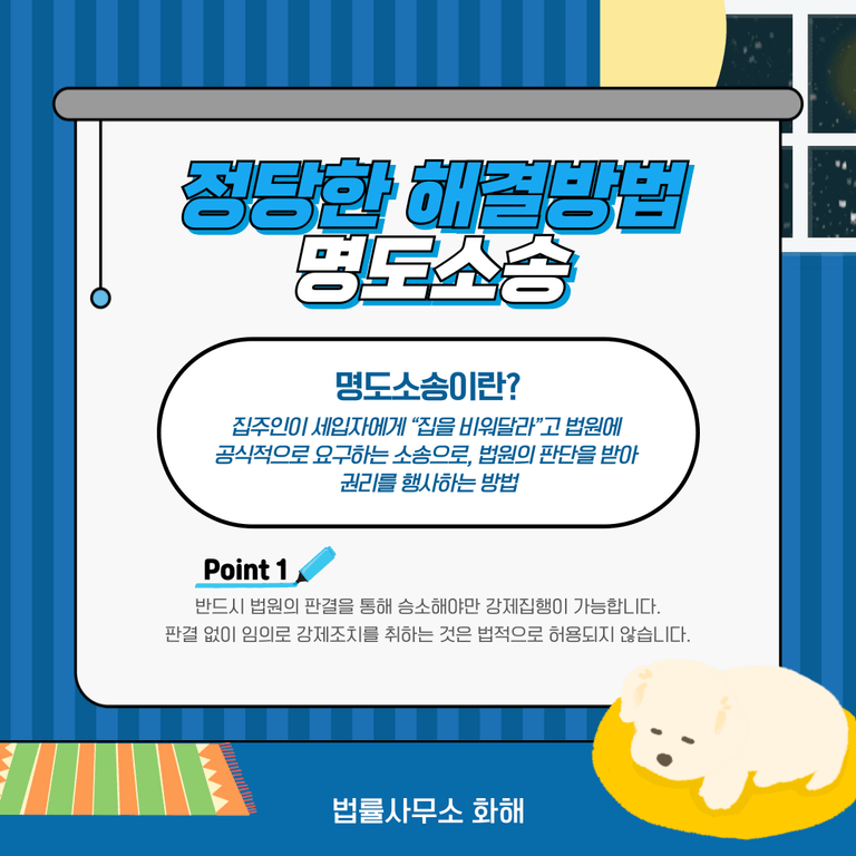 명도소송은 절차가 복잡하고, 준비해야 할 서류와 입증자료가 많기 때문에 저희 법률사무소 화해처럼 명도소송 경험이 풍부한 변호사의 도움을 받아 신속하고 효율적으로 진행하는 것이 매우 중요합니다. 민사 전문 변호사는 사건의 특성에 맞는 전략을 세우고, 각 단계별로 필요한 조치를 정확하게 안내하여 집주인의 권리를 최대한 보호할 수 있도록 도와드립니다.