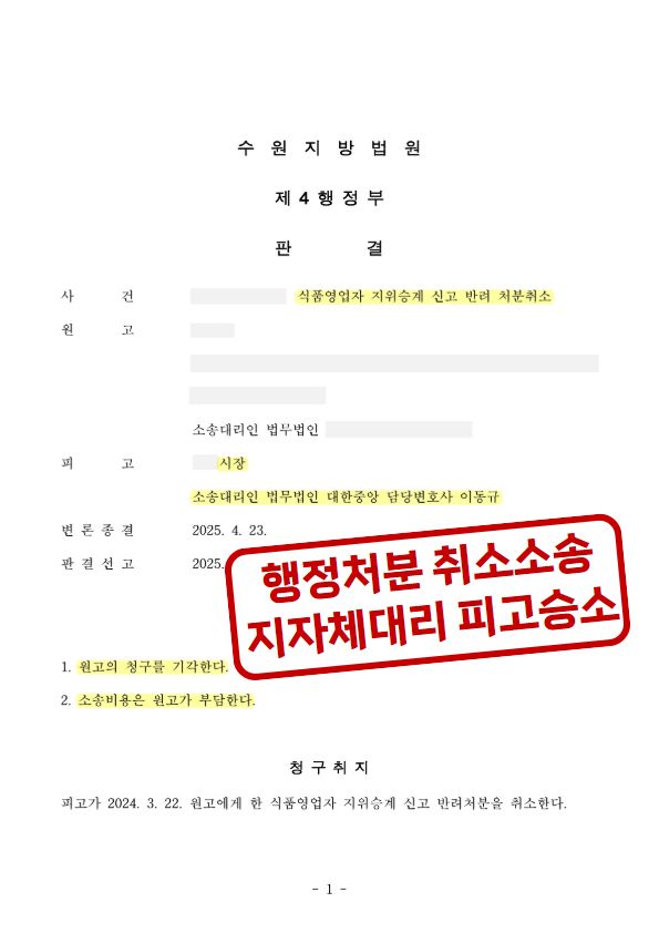 ![[🏛행정]식품영업지위승계 신고반려처분 취소, 지자체 대리 승소](/_next/image?url=https%3A%2F%2Fd2ai3ajp99ywjy.cloudfront.net%2Fuploads%2Ftitleimage%2Foriginal%2F5b890c896696eb4a246e023d-original.jpg&w=3840&q=75)