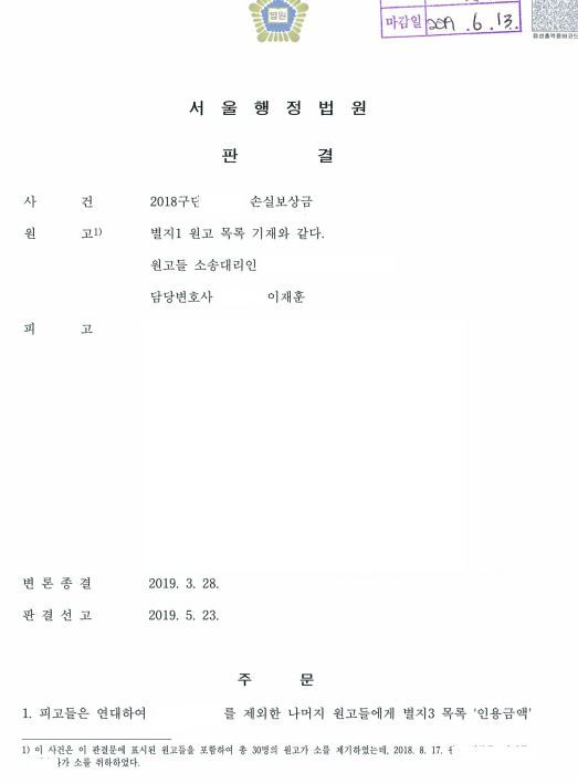 원고 27명을 대리하여 손실보상금 청구한 사례, 합계 366,417,560원 승소한 사안