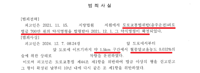 회사원 A씨는 2021. 12. 1. 도로교통법위반(음주운전)죄로 벌금 700만 원의 약식명령을 받은 전력이 있었습니다.
