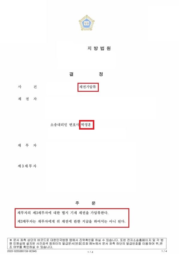 상간남의 '직장 급여' 가압류 인용 결정 승소 사례입니다.